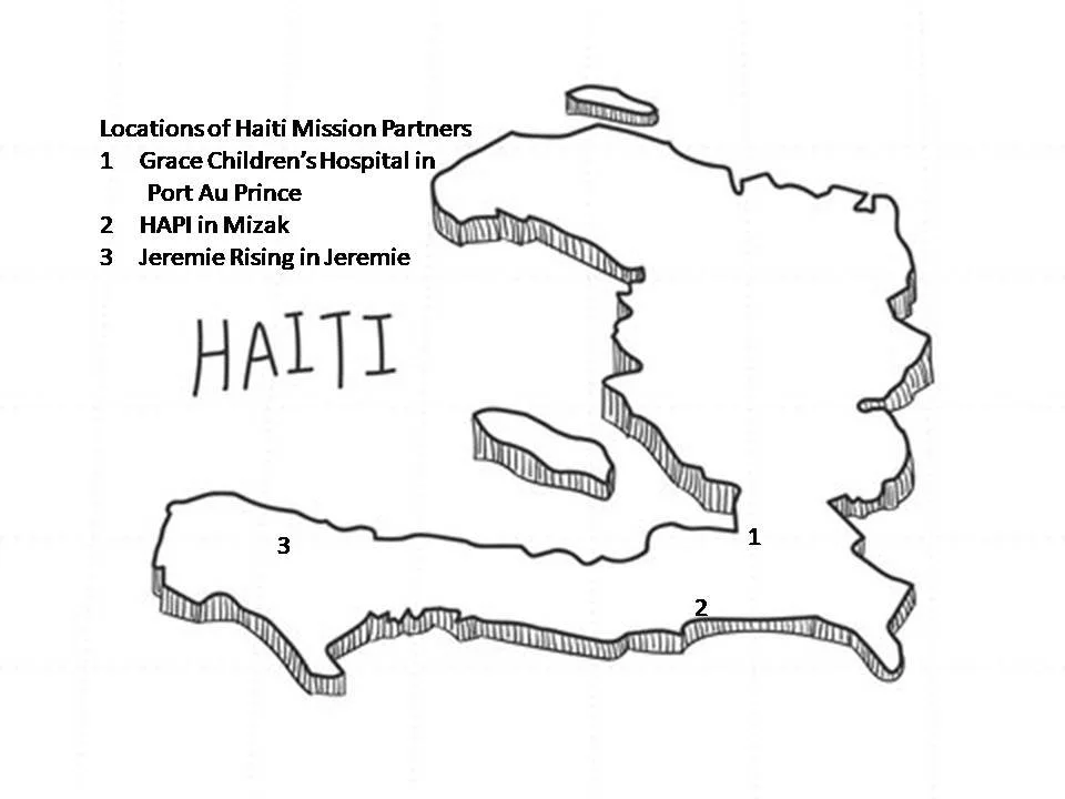 This map shows the geographic locations of our mission partners in Haiti. ~ map courtesy Gardens of Hope